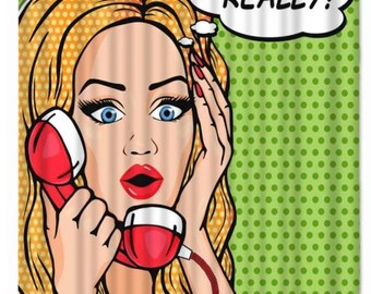 Retro Pop Art Cartoon Caption Shower Bath Curtain. Choose from a number of great designs or create your own. Comic cartoon pop art retro.