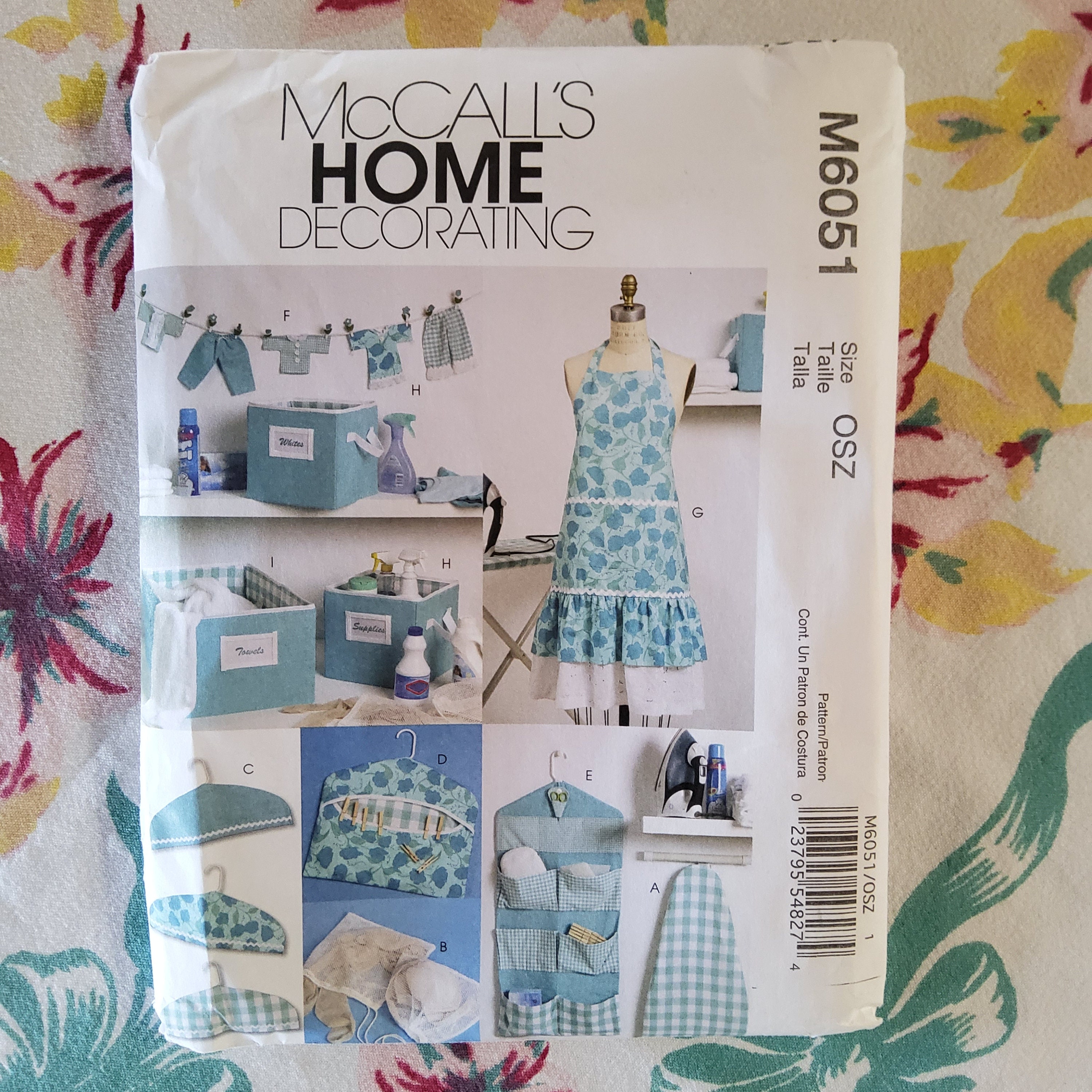 Mccall S 9388 Sewing Accessories Chair Ottoman Pin Cushion Machine Cover Sewing Organized Serger Cover Scrap Bag Apron Size One Uncut Sewing Pattern